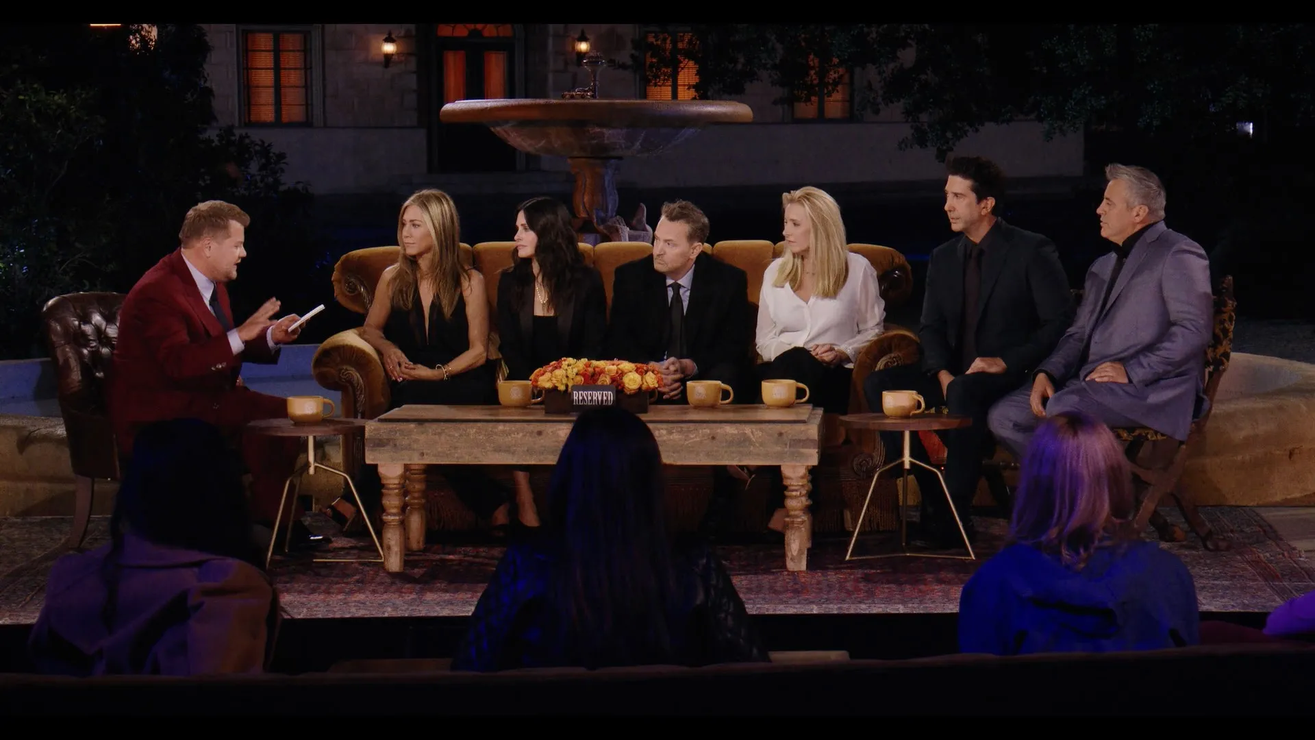 Jennifer Aniston as Self, Courteney Cox as Self, Lisa Kudrow as Self, David Schwimmer as Self, Matt LeBlanc as Self, Matthew Perry as Self, James Corden as Self - Moderator, Maggie Wheeler as Self, Tom Selleck as Self, Elliott Gould as Self, Christina Pickles as Self, James Michael Tyler as Self, Larry Hankin as Self, Thomas Lennon as Self, Reese Witherspoon as Self, David Beckham as Self, Lady Gaga as Self, Mindy Kaling as Self, Kit Harington as Self, Malala Yousafzai as Self, Justin Bieber as Self, Cara Delevingne as Self, Cindy Crawford as Self, Paul Rudd as (archive footage), Danny DeVito as (archive footage), Ben Stiller as (archive footage), Julia Roberts as (archive footage), Brad Pitt as (archive footage), Sean Penn as (archive footage), Kim Tae-hyung as Self, Kim Seok-jin as Self, Park Ji-min as Self, Min Yoon-gi as Self, Kim Nam-joon as Self, Jeon Jung-kook as Self, Jung Ho-seok as Self